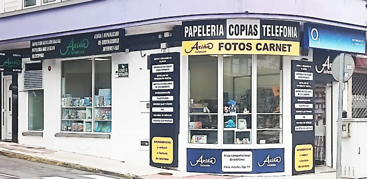 Copistería, papelería, telefonía e fotografía (revelado dixital e fotos carnet). Especializámonos muito en telefonía pa axudar ós nosos clientes a reducir a súa factura en internet e teléfono e levar internet a calquera sitio con fibra, con routers 5G ou satélite.